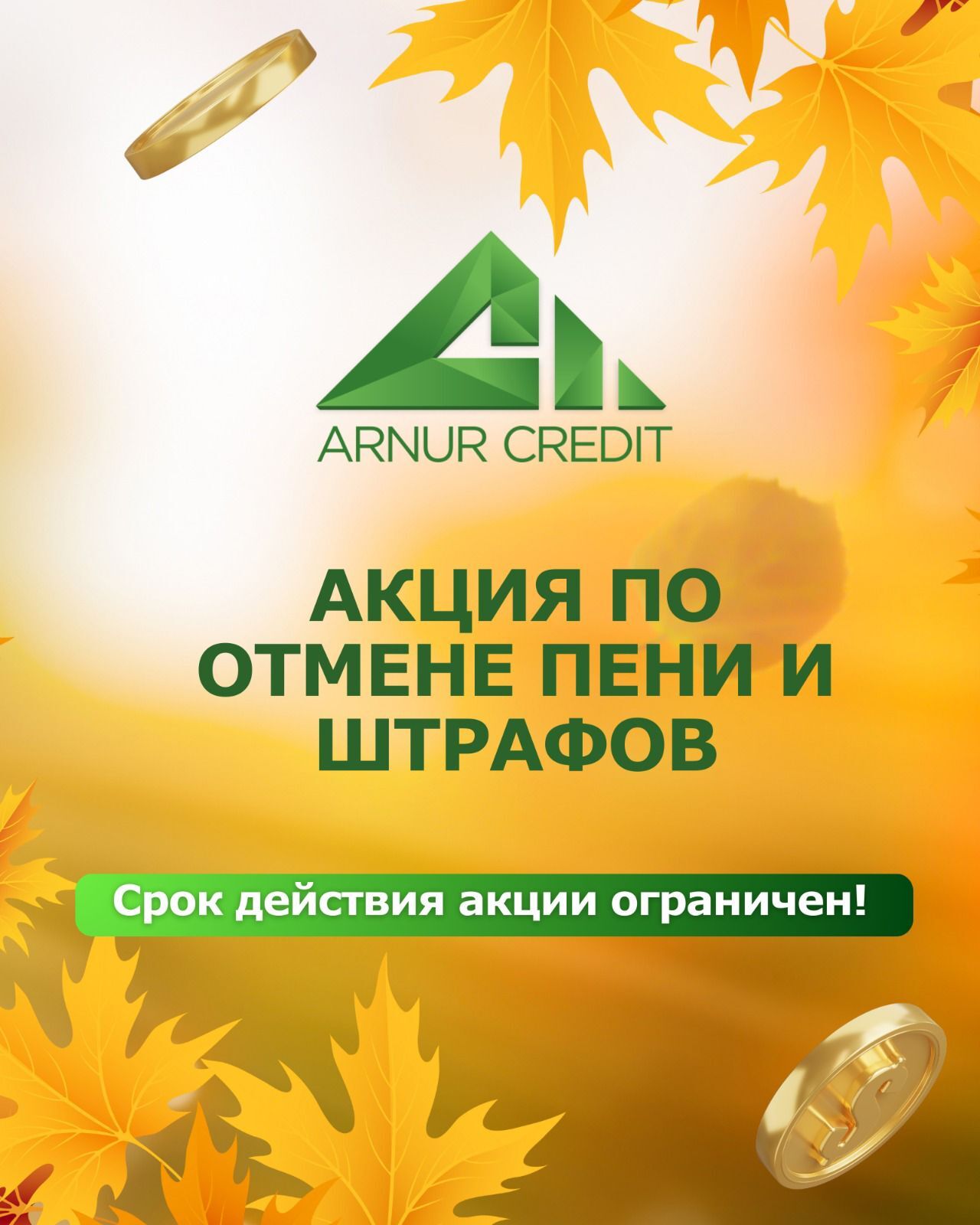 To the delight of our valued customers: ARNUR CREDIT has launched a promotion waiving fines and penalties!